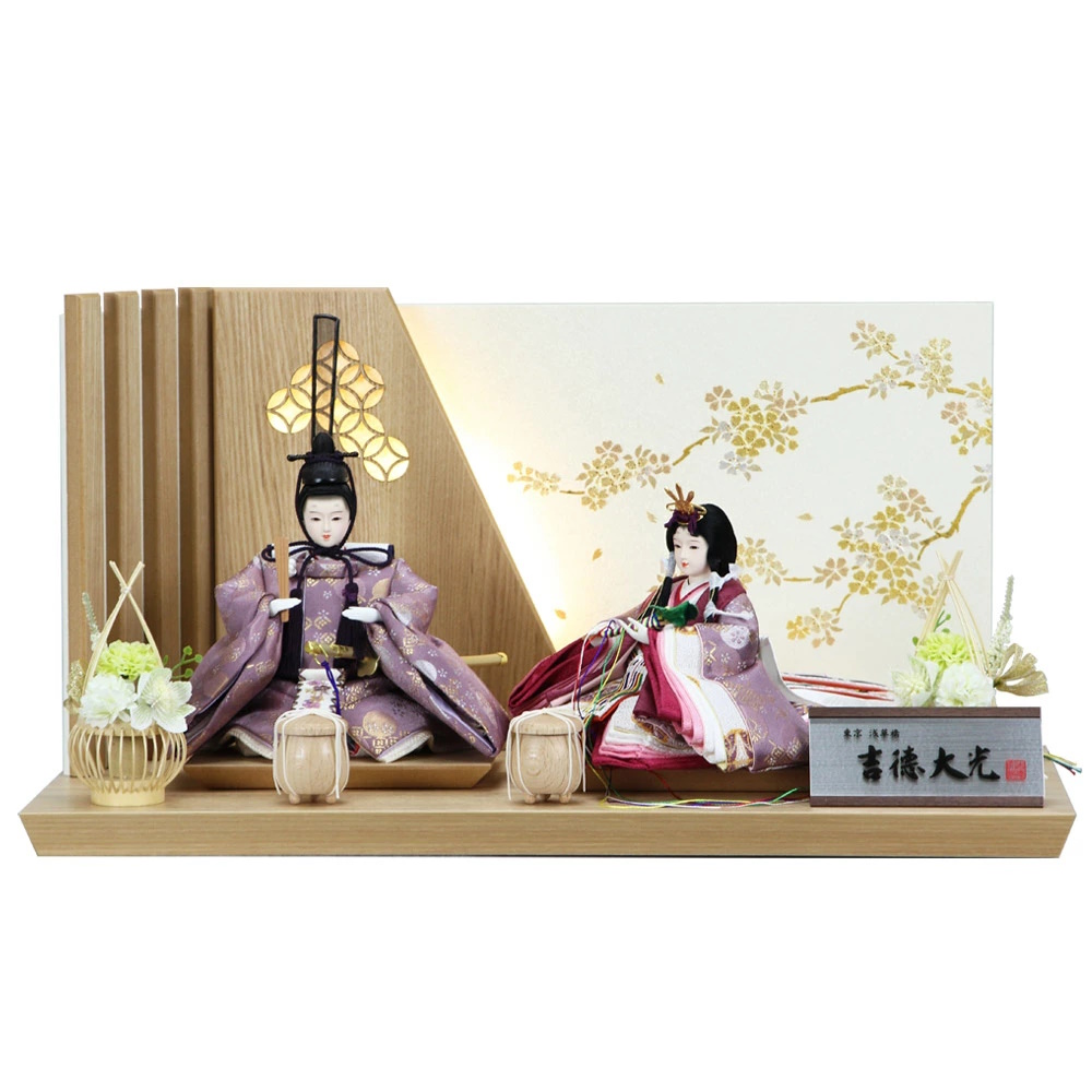 《雛人形 吉徳大光 小三五親王 木目花むすびナチュラル屏風》